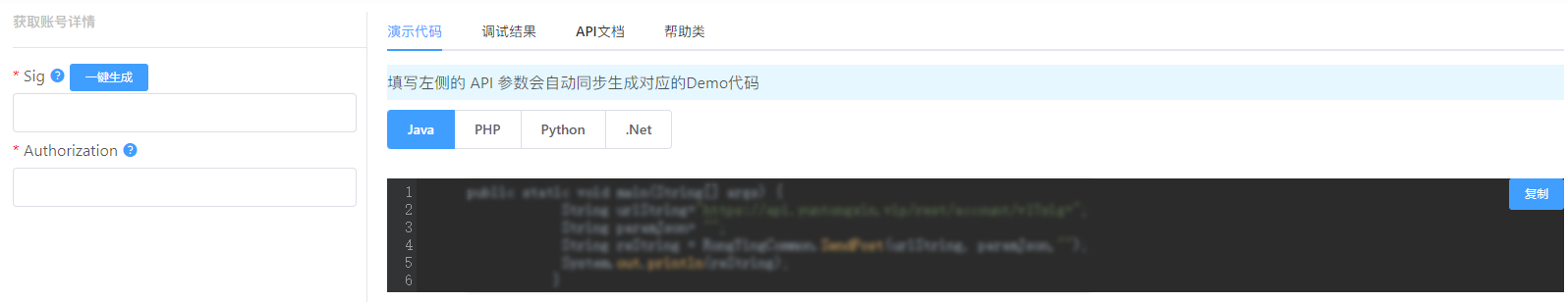 此时 Auth=Base64(账户授权 ID:账号授权 Token:时间戳),Sig = MD5(账户授权 ID:账号授权 Token:时间戳)。