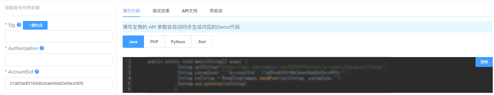 获取账号可用余额